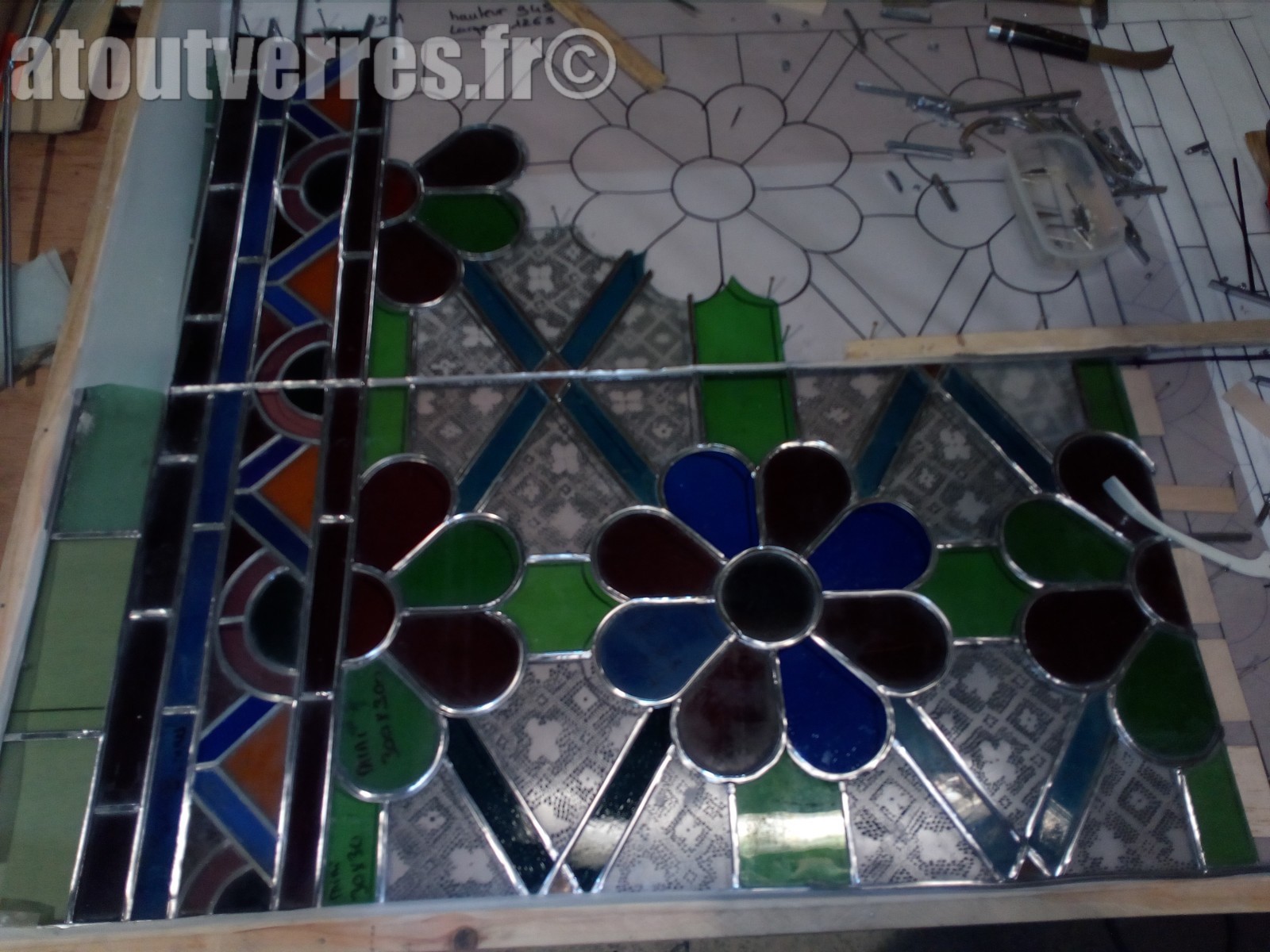 " Vitrailliste " verrier d'art au sein des ateliers de vitraux " Clair de verres " à Lyon. Élève du Maître Peintre-Verrier Daniel CASCARINO. Une participation au concours " un des meilleurs ouvrier de FRANCE " (M.O.F). Je reste à votre écoute pour tout projet de création ou restauration. (technique traditionnel au plomb)
